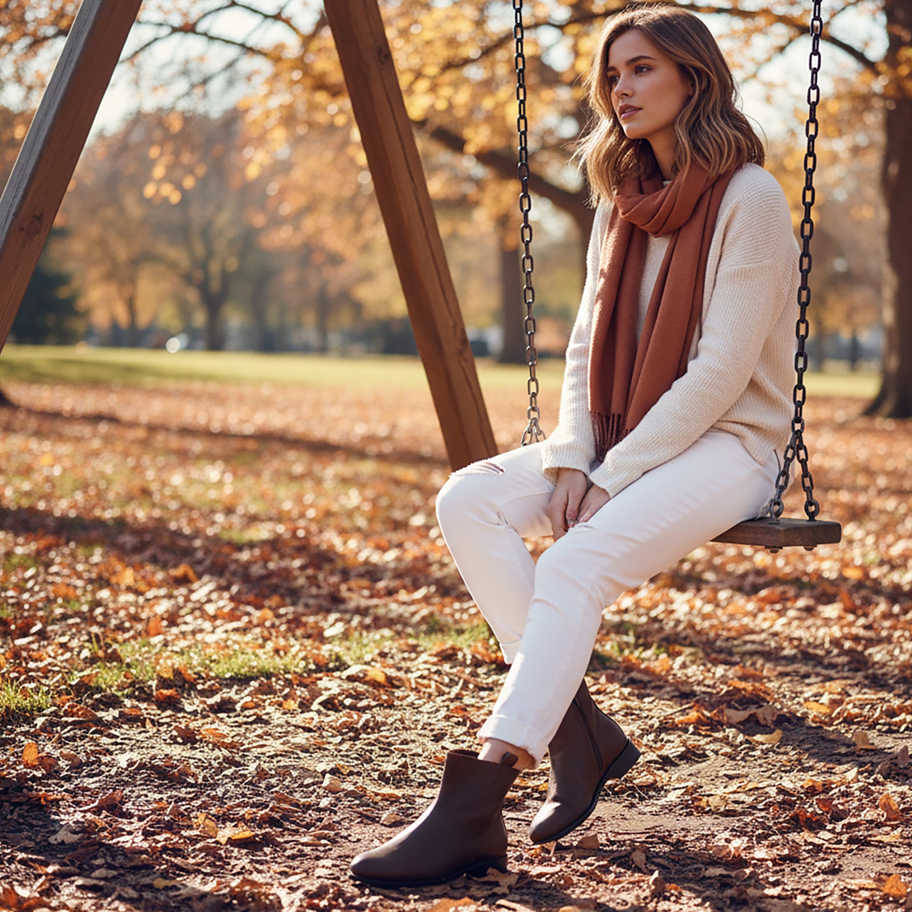 Classic brown leather ankle bootie with a smooth leather upper.  The low heel boots feature an inside zipper and a flare ankle circumference for easy entry.