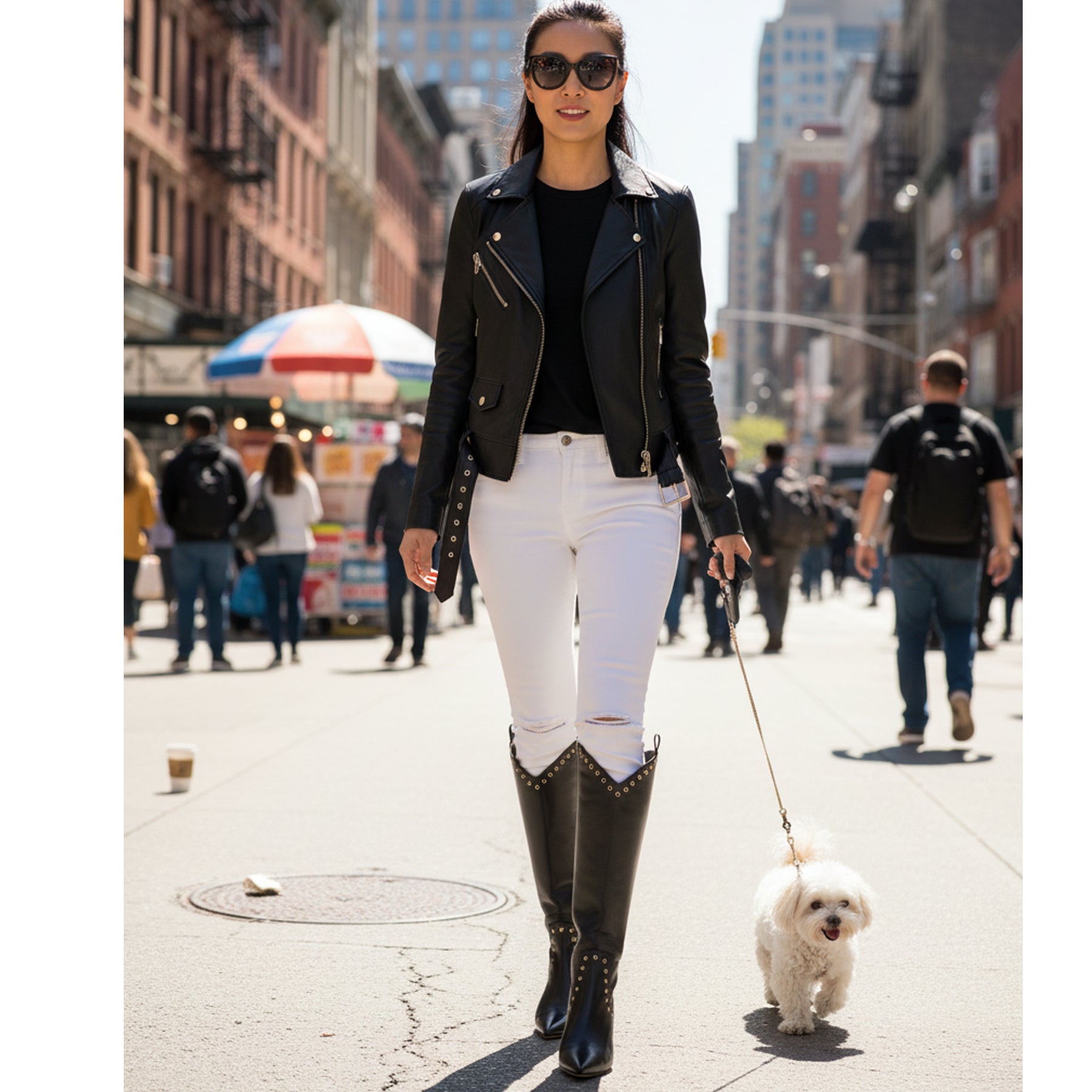 Stunning knee-high black leather boot crafted with grommet details, and inside zipper and a comfortable kitten heel. Timeless boho style!