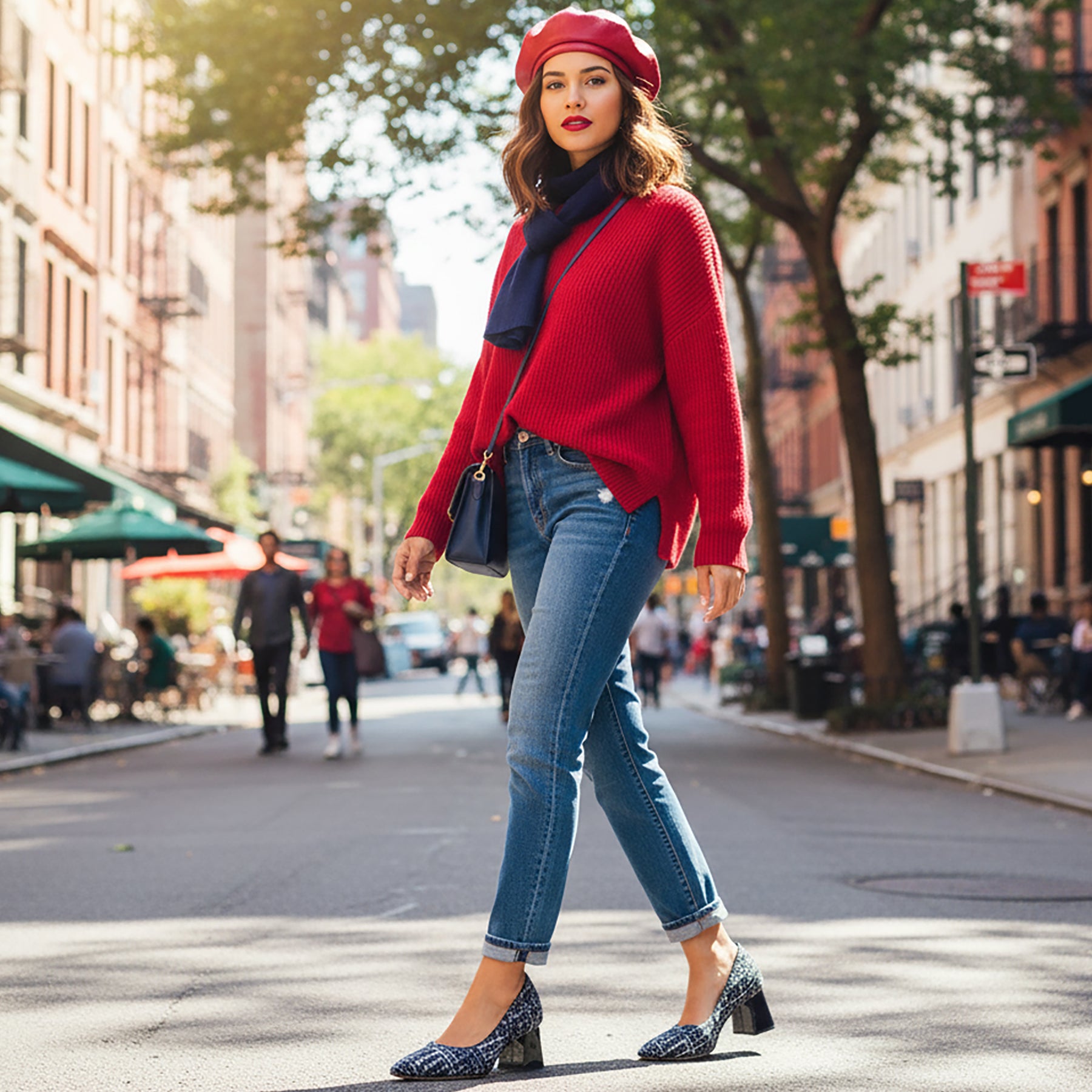 Corina in the navy and burgundy tweed/wool combo fit a bit smaller than in the black leather and camel suede. Kindly order half a size larger than your regular size for the Corina in burgundy/navy.