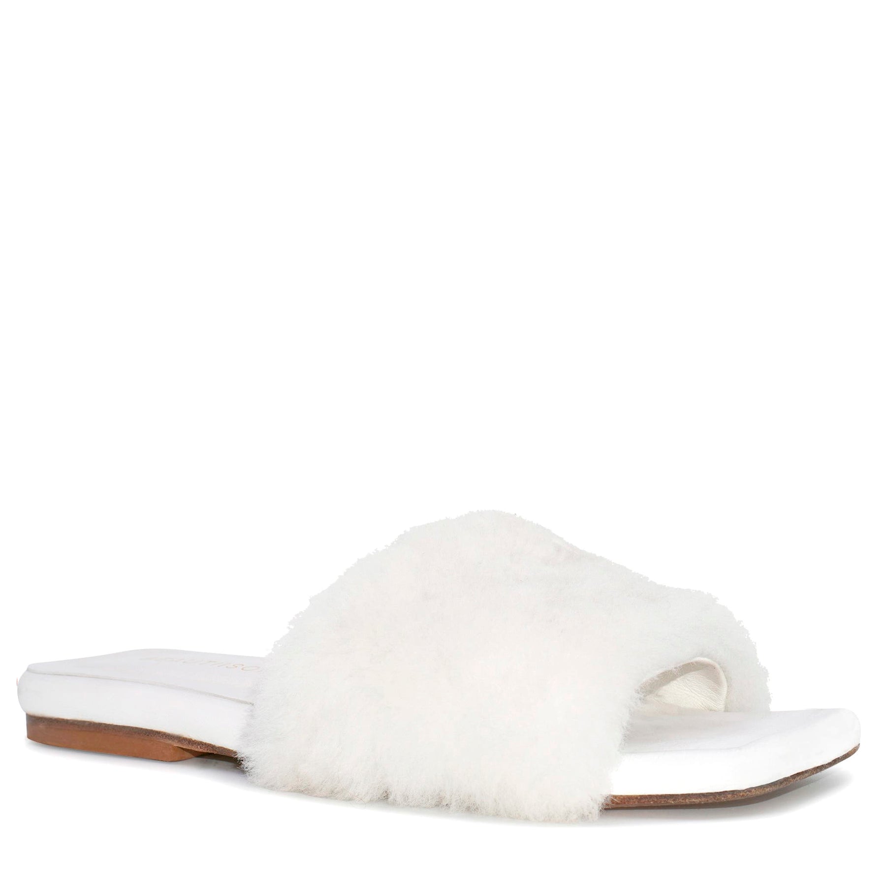 Refined leather slide with a shearling toe strap that has modern day charm and cloud-like comfort.