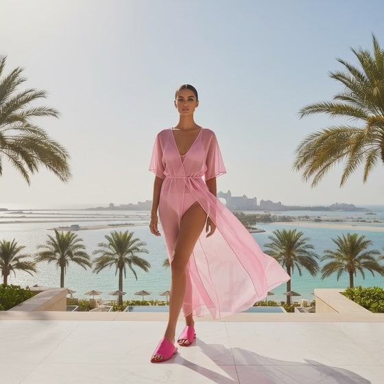 Colorful sandal slide-in. The flat features a padded leather insole and a soft breathable stretch satin upper and a light pink outsole.