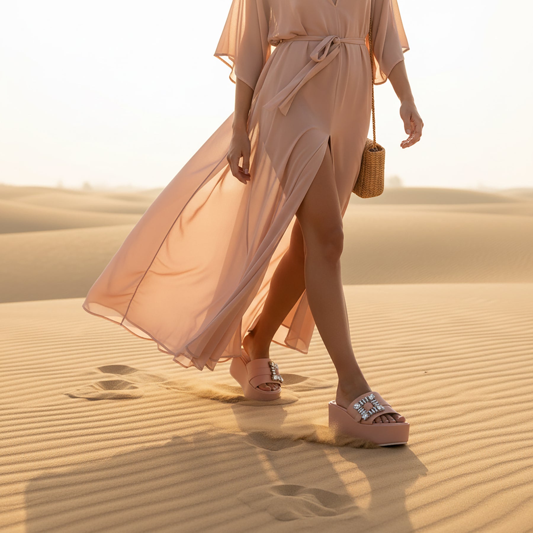 Dita is a medium-height platform leather sandal and is available in pastel colors. This supple leather slide is embellished with a rhinestone-covered buckle, features a padded insole for comfort and has a non-marking outsole.