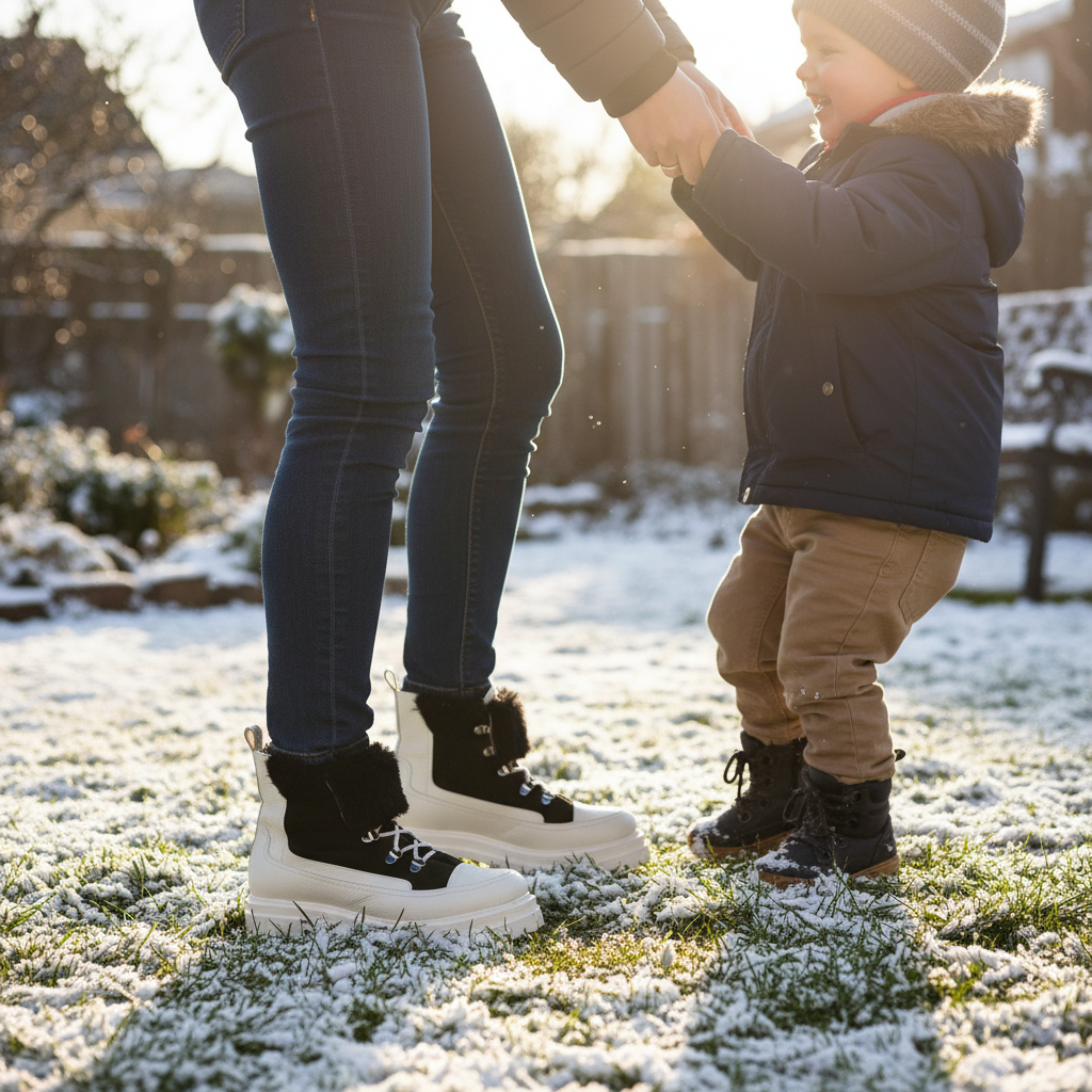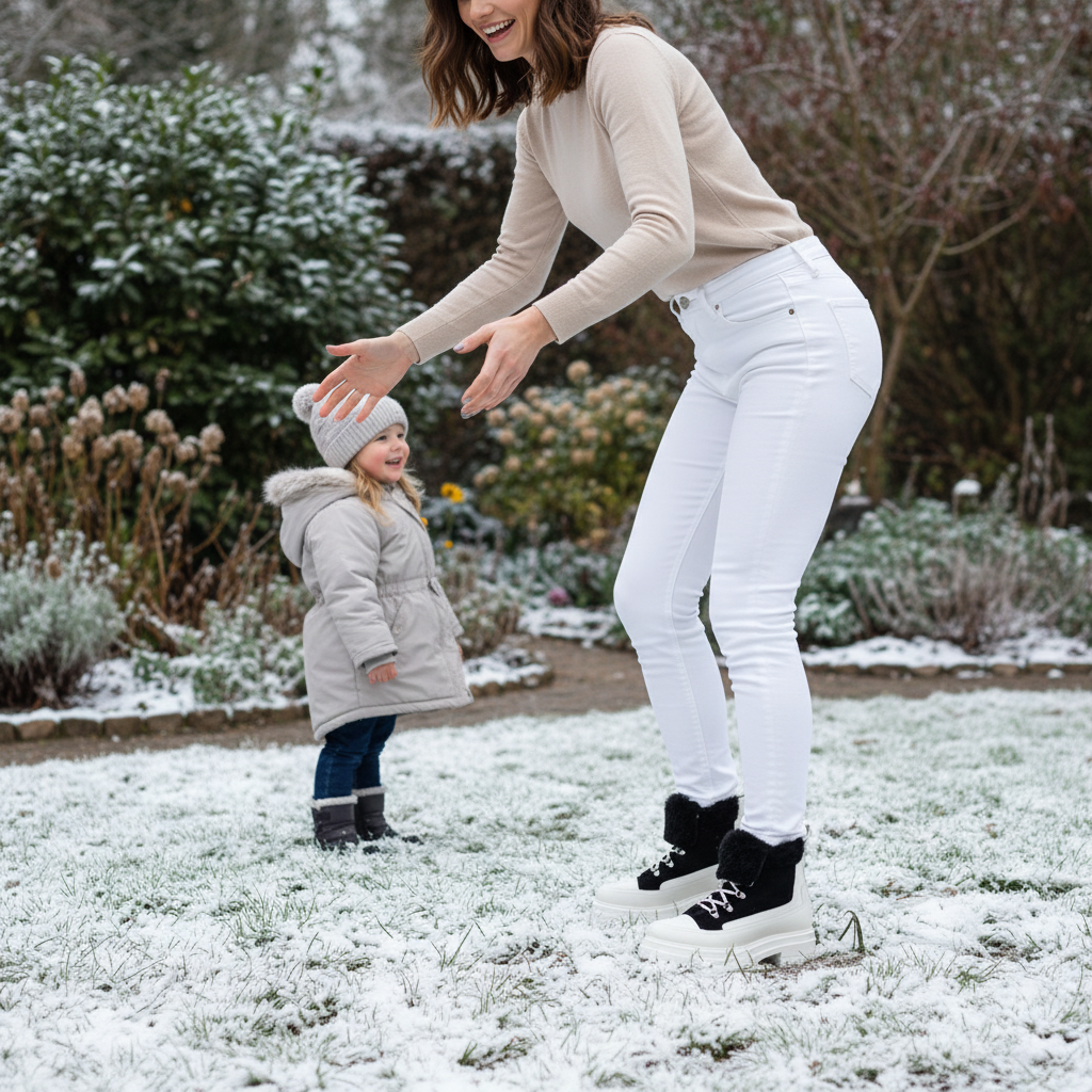 Francy is a comfortable autumn/winter ankle bootie, ultra-light and crafted in leather and in suede. The off-white leather with red suede pair is lined with colorful and soft faux fur to keep your feet warm.  This style can be worn with the tongue tucked it on flipped backward. The non-marking white lug sole will isolate your feet from the cold.